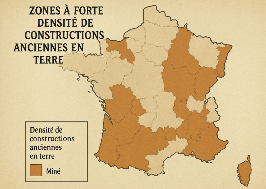 Malgré son recul à l’échelle nationale, la terre crue n’a jamais complètement disparu. Dans de nombreuses zones rurales, elle a survécu grâce à des usages locaux et à une tradition de transmission orale. On la retrouve notamment dans les fermes anciennes d’Auvergne, dans les murs de pisé du Beaujolais ou dans les maisons à torchis du Val de Loire.