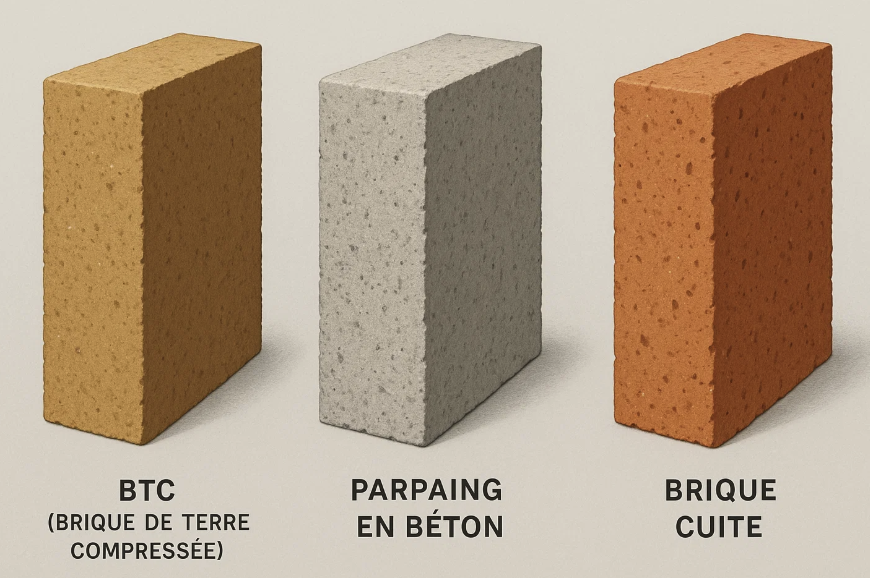 L’invention du BTC – bloc de terre comprimée – illustre parfaitement cette modernisation. Contrairement à l’adobe séché naturellement, le BTC est compacté sous haute pression à l’aide de presses mécaniques. Il devient plus régulier, plus résistant, et surtout plus compatible avec les outils de construction contemporains. Ce procédé permet même d’envisager une préfabrication sur site, limitant les transports. Le Guide Bâtiment Durable le cite comme l’une des alternatives les plus crédibles au parpaing.